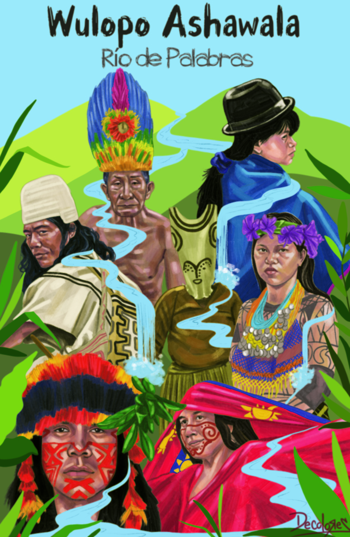 Ilustraciones de portada y contraportada para el libro Río de Palabras de Yulieth Herrera Uribe.